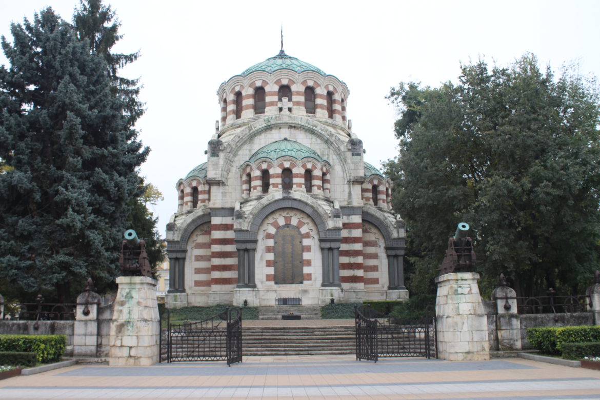 Segue poi un pezzo di rara bellezza e storia fuse insieme: sto parlando della Cappella-Mausoleo “San Giorgio il Vittorioso” eretta nel 1907. E’ chiusa all’interno di una recinzione custodita da diversi cannoni che rendono la cosa davvero singolare; ha di fronte un fuoco che arde in maniera perpetua ed un lastrone con delle incisioni, sicuramente nomi ed avvenimenti di un passato che non c’è più. Nella cripta sono custodite le ossa di soldati bulgari, ma anche russi, ucraini, bielorussi, moldavi, rumeni e finlandesi che hanno perso la vita proprio qui a Pleven. Ma ora basta scrivere, meglio vedere.