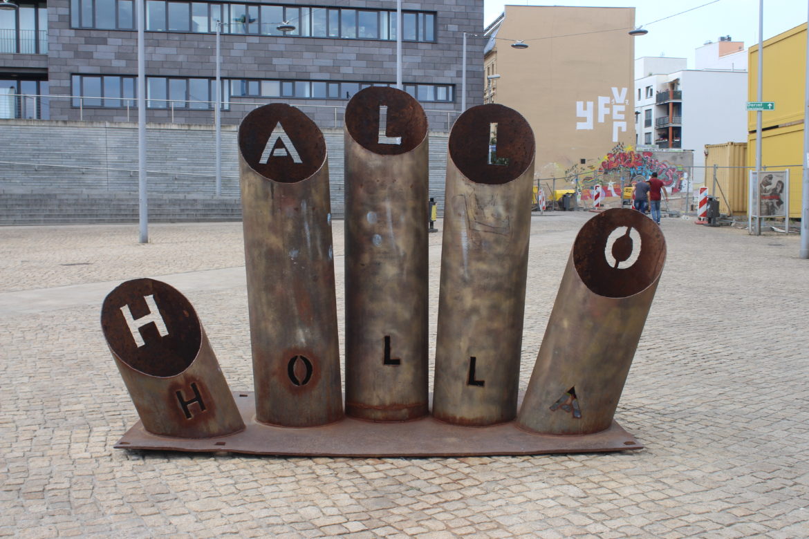 Prendo “Leipziger Strasse” ed inizio a percorrerla; è la classica via pedonale con negozi di ogni genere (adesso chiusi) su ambo i lati. Dopo un paio di minuti trovo un bizzarro monumento che prende in nome di “La grande coppia”, mentre nel punto in cui la via forma un largo per poi proseguire oltre posso ammirare la Leipziger Turm.